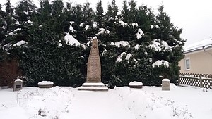 Denkmal-Nr.: 09245328 Brunn bei Reichenbach in historischer Ansicht. Die beiden Gartenzaunsäulen gibt es nicht mehr, während der Stein komplett saniert wurde. Errichtet von Oswald Graschwitz, Turnverein Eintracht, Ortsverein Brunn. Geweiht wurde es am 23. Juli 1922. Den Platz des Ehrenmals stellte Rittergutsbesitzer Sachse unentgeltlich zur Verfügung. Der ca. 90 Zentner schwere Stein stammt aus dem Granitbruch in Röthenbach. Die Neumarker Firma Weichelt & Wachwitz stellte für den Transport einen großen Kesselwagen zur Verfügung. (vgl. Fehlhauer S. 170)