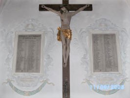 Tafeln in der kath. Stadtpfarrkirche St. Vitus, Eingangsbereich.