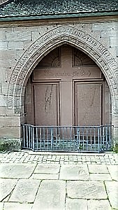 An der Außenseite des Chores der ev. Stadtkirche St. Peter und Paul in Calw ist zwischen zwei Wandpfeilern ein Denkmal für die Gefallenen des Ersten Weltkriegs in Form eines gotischen Bogens eingelassen. Neben einem mittig angeordneten Kreuz sind rechts und links je eine Tafel mit den Namen der Gefallenen angebracht.