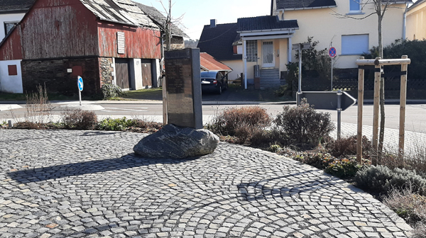 Marmorgedenkstein an einem auf einem Steinsockel.