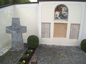 Bei der Kirche St. Maria und Margareta, im Zugang zum Friedhof in einer Wand ein Bildnis vom Heiligen Georg mit dem Drachen. Darunter drei Gedenktafeln. Seitlich davor ein Steinkreuz.