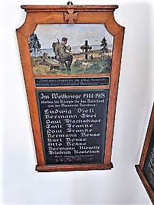 Im Weltkriege 1914-1918 starben im Kampfe für das Vaterland aus der Gemeinde Dornburg: (Namen) Ehre ihrem Andenken!
