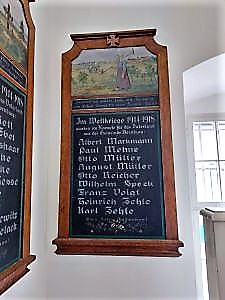 In der Schlosskirche St. Christopherus befinden sich zwei Namenstafeln mit den Gefallenen des Ersten Weltkriegs. In der Ortsmitte ist eine Gedenkstein errichtet.