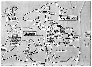 Denkmal-Nr. 09232121 (Kirche). Der Ort Dröda hat für seine im Krieg 1914 - 18 gefallenen sechs und im Zweiten Weltkrieg 22 Gemeindemitglieder kein Ehrenmal errichtet. In der Kirche erinnert die abgebildete Tafel an die Opfer beider Weltkriege. Als diese frisch hergerichtet wurde, entdeckte man auf der Rückseite die im Foto zu sehende Karte, die der Drödaer Schriftenmaler Fritz Burkhart (bereits verstorben) irgendwann gefertigt hatte. Er hatte sich sogar die Arbeit gemacht, festzuhalten, wo der jeweilige gefallen ist.