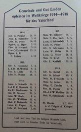 Gemeinde und Gut Emden opferten im Weltkriege 1914-1918 für das Vaterland (Namen) Und wer den Tod im heilgen Kampfe fand, ruht auch in fremder Erde im Vaterland.