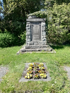 Erdmannsdorf, Gemeinde Augustusburg, Landkreis Mittelsachsen, SachsenPLZ 09573 Denkmal vor der Kirche mit dreistufigem Sockel, Inschriftstafel und krönender Schale