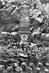 Falkenstein/Vogtl. (1870/71), Vogtlandkreis, SachsenPLZ 08223 Das Denkmal für die Gefallenen des Deutsch-Französischen Krieges stand unterhalb des Schlossfelsen. Es war als Obelisk mit Inschrift auf einem Sockel gestaltet. Davon steht nur noch der Sockel.