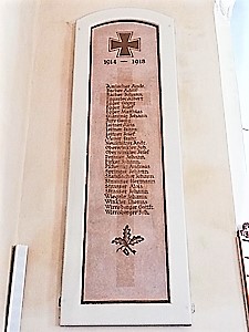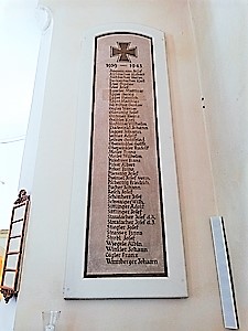 Zwei Namenstafeln in der Kirche zu Fischertratten mit Eisernen Kreuzen und Eichenlaub als Symbolgestaltung