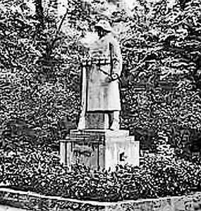Denkmal für die Gefallenen des 1. Weltkriegs: Quader mit Standbild eines Soldaten mit Gewehr und Stahlhelm.