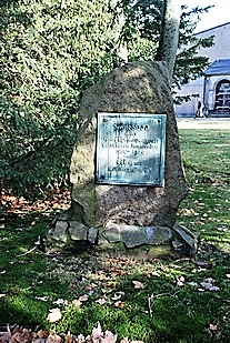 schlichter Naturstein von 1,8 Metern Höhe mit einer roten Granitplatte erinnert an die Gefallenen des Ers.-Infanterie