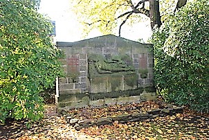 Denkmal wurde 1922 von den Burschenschaften der Bergakademie gestiftet: Eine ca. 4 x 2,5 Meter Feldsteinmauer zeigt das