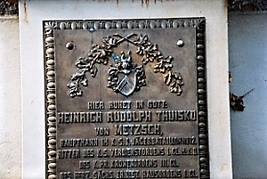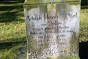 (Daten) Dem Andenken des geliebten und verehrten Führers, das Officierscorps des 1 ten leichten Reiter Regiments Prinz Ernst Er wohnte den Feldzügen 1807, 1809, 1813, 1814 und 1815 bei und focht in den Schlachten bei Hertsberg, Friedland, Deutsch-Wagram, Bautzen und Dresden