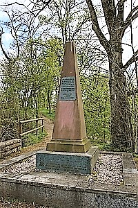 Etwa 700m vom Friedhof entfernt, an einem Wanderweg gelegen; auf einem Sockel spitz zulaufende Säule