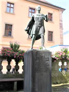 Ein auffälliges Ehrenmal für die etwa 200 gefallenen Schüler und Lehrer des Ersten Weltkrieges im Schulhof des barocken damaligen Staatlichen Gymnasiums, vor 1918 königlichen Gymnasiums (heute Ehrenhof der Alten Universität, Universitätsstraße 1). Es wurde am 8. Mai 1938 eingeweiht. Bei dem Ehrenmal handelt es sich um einen aus Bronze gegossenen, auf einem Sockel aus Rhönsandstein stehende zwei Meter hohe Figur eines antiken Kriegers. Die Figur schuf der Bildhauer Ludolf Albrecht aus Schenefeld bei Hamburg, dessen Name auch auf der bronzenen Bodenplatte zu lesen ist. Gegossen wurde die Plastik in der Erzgießerei Adalbert Brandstetter in München.