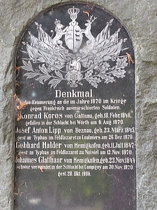 „Denkmal der Erinnerung an die im Jahre 1870 im Kriege gegen Frankreich ausmarschierten Soldaten.“