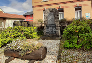Steindenkmal für beide Weltkriege in einer kleinen Anlage an der Durchgangsstraße.