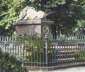 Denkmal für die im Kriege 1813-1815 in Gleiwitzer Lazaretten verstorbene Soldaten: Abgestufter Quader mit Inschriften, darauf eine ruhende Löwenfigur (abgerissen). Das Denkmal stand ursprünglich auf dem Friedhof der Kolonie Neudorf wo 65 verstorbene Soldaten bestattet waren. König Friedrich Wilhelm IV. persönlich ließ dieses Denkmal 1846 errichten, 1890 wurde es in den Stadtpark versetzt. Die Seiten waren mit langen (unbekannten) Inschriften oder Namen versehen. Ein stabiler schmiedeeiserner Zaun mit antiken Helmen an den Ecken umrandete das Denkmal.