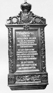 MIT GOTT KÄMPFTEN UND STARBEN FÜR DES VATERLANDES EHRE u. GRÖSSE im FESTEN GLAUBEN AN DEN ENDLICHEN SIEG, GETREU IHREM EIDE: 36 OFFIZIERE, 481 UNTEROFFIZIERE UND MANNSCHAFTEN. 1914 (Stahlhelm) 1919