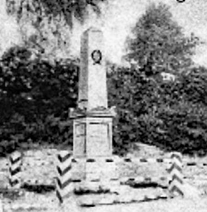 Denkmal für die Gefallenen des Krieges 1870/71: Abgestufter Obelisk mit EK im Ehrenkranz an der Spitze.