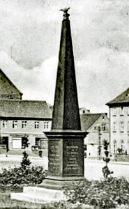Denkmal für die Gefallenen des Krieges 1870/71 auf dem Marktplatz: Obelisk mit krönendem Adler.