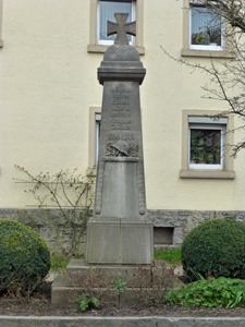 Steindenkmal für die Gefallenen und Teilnehmer am Frankreich-Feldzug. eckiges Steindenkmal mit krönendem Tatzenkreuz