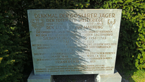 Gedenktafel: DENKMAL DER GOSLARER JÄGER DEN TOTEN DER WELTKRIEGE 1914 – 1918 ---------------- 1939 – 1945 DEN LEBENDEN ZUR MAHNUNG