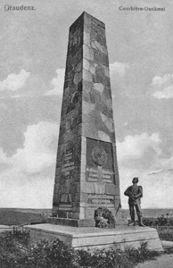 Postkarten nicht lesbar. Der Stein-Obelisk wurde zur 100 Jahrfeier errichtet.
