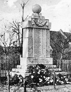 Auf dem vorliegenden Foto einer alten Postkarte konnte nicht die ganze Inschrift und keine Namen abgelesen werden.