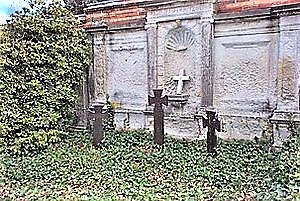 Kreuz außerhalb Hier ruhen 24 Kriegstote 11 davon unbekannt