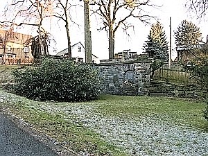 Denkmal-Nr. 09246991 Die Gedenkanlage von Großfriesen wurde am 26.07.1931 enthüllt und gedenkt der vierundzwanzig Gefallenen. Eine kreisförmige Anlage aus Theumaer Schiefer gesetzt. Ursprünglich waren die Namen der im Ersten Weltkrieg Gefallenen sowie Inschrift in die Steine gemeißelt. In der Mitte der einfachen Anlage befinden sich ein Wasserbecken und eine Treppe. An der Wand wurden vorstehende Steine eingefügt, die der Aufhängung von Kränzen dienten. Ursprünglich war die Mauer bepflanzt. Nach einer Renovierung wurde eine neue Tafel angebracht. Die Namen der Opfer sind nicht mehr enthalten.