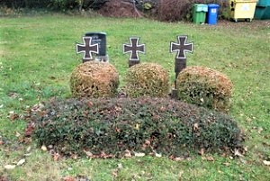 Großschirma (Kriegsgräber), Landkreis Mittelsachsen, SachsenPLZ 09603 Auf dem örtlichen Friedhof befinden sich drei Soldatengräber aus dem Zweiten Weltkrieg. Typische Gräber mit Holzkreuzen in Form eines Eisernen Kreuzes.