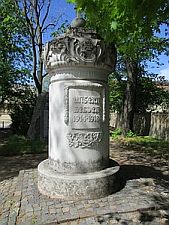 1. Weltkriegs ist in Form einer Litfaßsäule gestaltet und weiß gestrichen. Oben zeigen sich