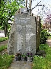 Vor dem Eingang zum Friedhof/Kirchhof stehen zwei Denkmale. Das Denkmal für die Gefallenen des