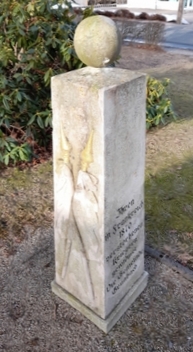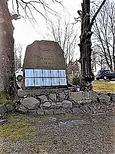Stirnseite Inschrift IHREN DEM WELTKRIEGE ZUM OPFER GEFALLENEN SÖHNEN (Namen 2. WK) (auf den Steinen an den Flanken Namen)