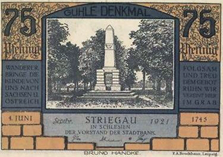 Das Denkmal wurde in den 1920er Jahren auch auf einem Notgeldschein der Stadt Striegau abgebildet.