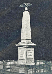 Denkmal für die Gefallenen des Krieges 1870/71: Obelisk mit Inschriften und krönendem Adler.