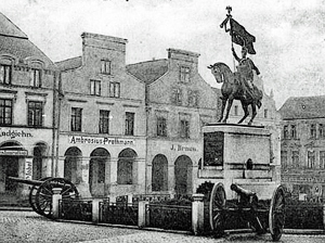 Das Denkmal zur Schlacht bei Heilsberg, das auf dem Marktplatz stand, erinnerte an den 10.06.1807, als das deutsche Husaren Regiment von Prittwitz französische Truppen besiegte.