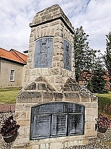 Anmerkungen: *) In den Verlustlisten des Ersten Weltkriegs taucht lediglich einmal der Name Erwin Röhrßen auf. Ein Leutnant dieses Namens, gebürtig aus Niederhermsdorf, Neiße, diente in der Maschinengewehrkompanie des 7. Lothringischen Infanterie-Regiments Nr. 158 und galt wohl seit Mitte 1916 als vermisst. (Siehe Preußische Verlustliste Nr. 560 vom 21.06.1916, Seite 13038). Ob er aber derjenige ist, dessen Name auf dem Denkmal in Heyersum vermerkt ist, vermochte ich nicht zu verifizieren. Ergänzungen in Rot: Internetrecherche (v. a. Verlustlisten Erster Weltkrieg bei genalogy.net, Regimentsgeschichten). Ergänzungen in Blau: Daten aus www.volksbund.de/graebersuche.html.