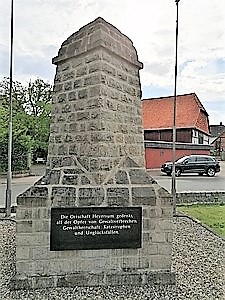 Tafel auf der Rückseite Die Ortschaft Heyersum gedenkt, all der Opfer von Gewaltverbrechen, Gewaltherrschaft, Katastrophen und Unglücksfällen.