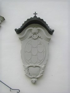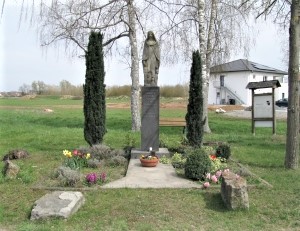 Rechts vom Eingang zur Kirche St. Vitus befindet sich eine Gedenktafel für die Gefallenen und Vermissten des Ersten Weltkrieges. Name, Einheit, Todesdatum u. -ort jedes Soldaten steht auf einem angedeuteten Wappen. Schwarze Steinstele mit einer Muttergottes-Figur.