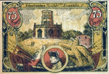 Das Denkmal war auch auf einem Notgeldschein von Hohenfriedeberg in den 1920er Jahren abgebildet.