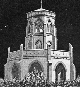 Achteckiger Gedenkturm. Breites Unterteil mit Gedenkhalle, umrandet von Zinnen. Darauf schmaler Turm mit gotischen Fenstern. Der Gedenkturm wurde 1845 zum 100. Jahrestag der Schlacht bei Hohenfriedeberg (im 2. Schlesischen Krieg) errichtet.