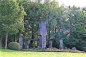 Ispringen (1. und 2. Weltkrieg), Enzkreis, Baden-WürttembergPLZ 75228 Im Friedhof; auf Säulen getragener Halbbogen, im Zentrum gemauertes Hochkreuz (ohne Namen), sowie Daten von privaten Gedenksteinen
