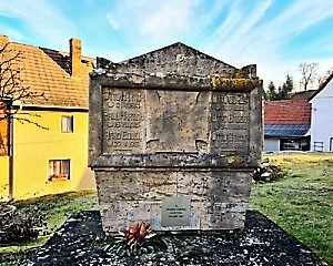 Vor der Dorfkirche St. Katharina steht auf dem Kirchhofe ein Denkmal in Form eines Sarkophags aus Kalksandstein. Auf einem konischen Vierkantunterbau erhebt sich ein Quader, der mit einem Spitzdach abgeschlossen wird. An der Stirnseite des Mittelteils ein stilisiertes Eisernes Kreuz und daneben die Namen der Opfer. Am Sockel die Widmung und eine Tafel mit Inschrift für die Toten des Zweiten Weltkrieges.
