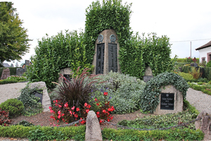 Im Friedhof an der Bühlwegkapelle Mariae Ruh das Denkmal für den 1. Weltkrieg: Aufrecht stehender rauer Felsblock, geschmückt mit zwei gleichen Medaillons aus Bronze: Eisernes Kreuz im Ehrenkranz. Darunter zwei schwarze, polierte Steinplatten mit Inschrift und Namen. Vier flankierende kleinere Steinblöcke tragen Tafeln mit weiteren Namen. Die Gefallenen sind auch auf dem Denkmal in Ortenberg verzeichnet (separater Beitrag).