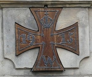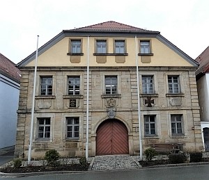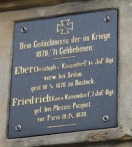 Kasendorf (Rathaus), Landkreis Kulmbach, Oberfranken, BayernPLZ 95359 Marmortafel an der Außenwand vom Rathaus. Daneben noch ein genageltes Eisernes Kreuz mit der Jahreszahl 1915.