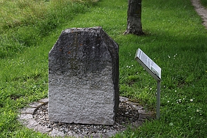 Tafel: Gedenkstein zur Deportation jüdischer Mitbürger Jugendliche aus Efringen-Kirchen, Hertingen und Bad Bellingen haben 2003-2005 diesen Gedenkstein hergestellt, dessen Ebenbild im zentralen Mahnmal in Neckarzimmern steht, zur Erinnerung an die Vertreibung und Vernichtung der jüdischen Mitbürger aus 137 badischen Orten am 22. Oktober 1940. Besonderer Dank gilt dem Steinmetzbetrieb J. Abel (Auggen), der Sparkasse Markgräflerland und weiteren Spendern. Evangelisches Distriktbüro Rebland Gemeinde Efringen-Kirchen