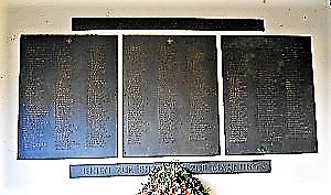 Eingangsbereich zum Rathaus auf linker Seite drei Tafeln der Vermissten des 2. Weltkrieges / darüber und darunter eine Inschrift