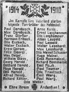 1914 1918 Jm Kampfe fürs Vaterland starben folgende Turnbrüder den Heldentod: (Namen) Ehre ihrem Andenken!