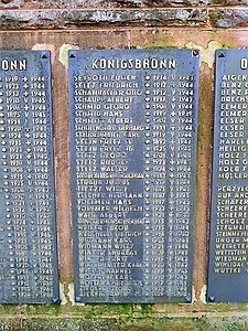 Anmerkung: Auf den Tafeln steht vor dem jeweiligen Sterbejahr ein Kreuz (wohl für gefallen)